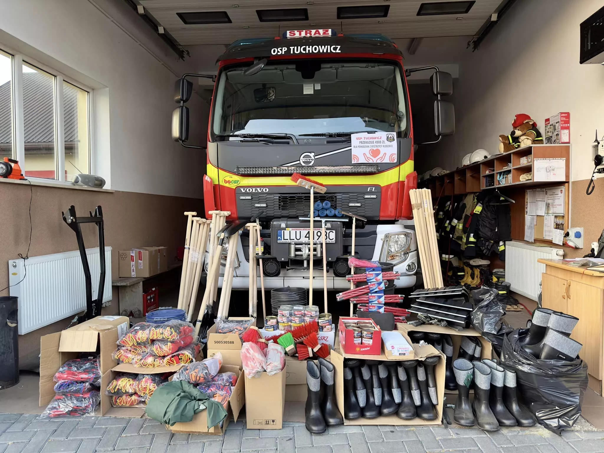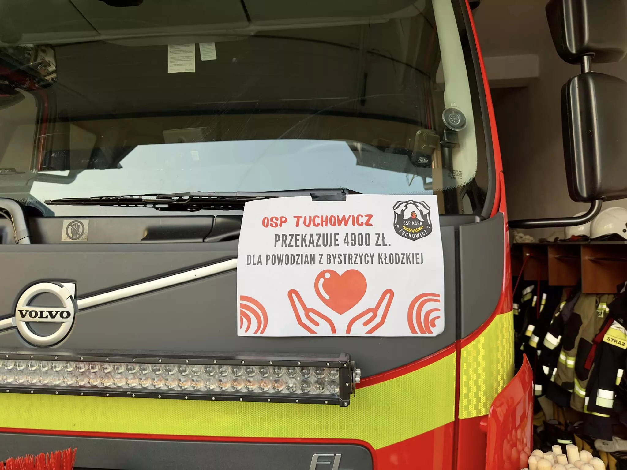 Z dumą informujemy, że **Ochotnicza Straż Pożarna w Tuchowiczu** przekazała dary o wartości **4900zł.** na rzecz osób poszkodowanych przez powódź z Bystrzycy Kłodzkiej.