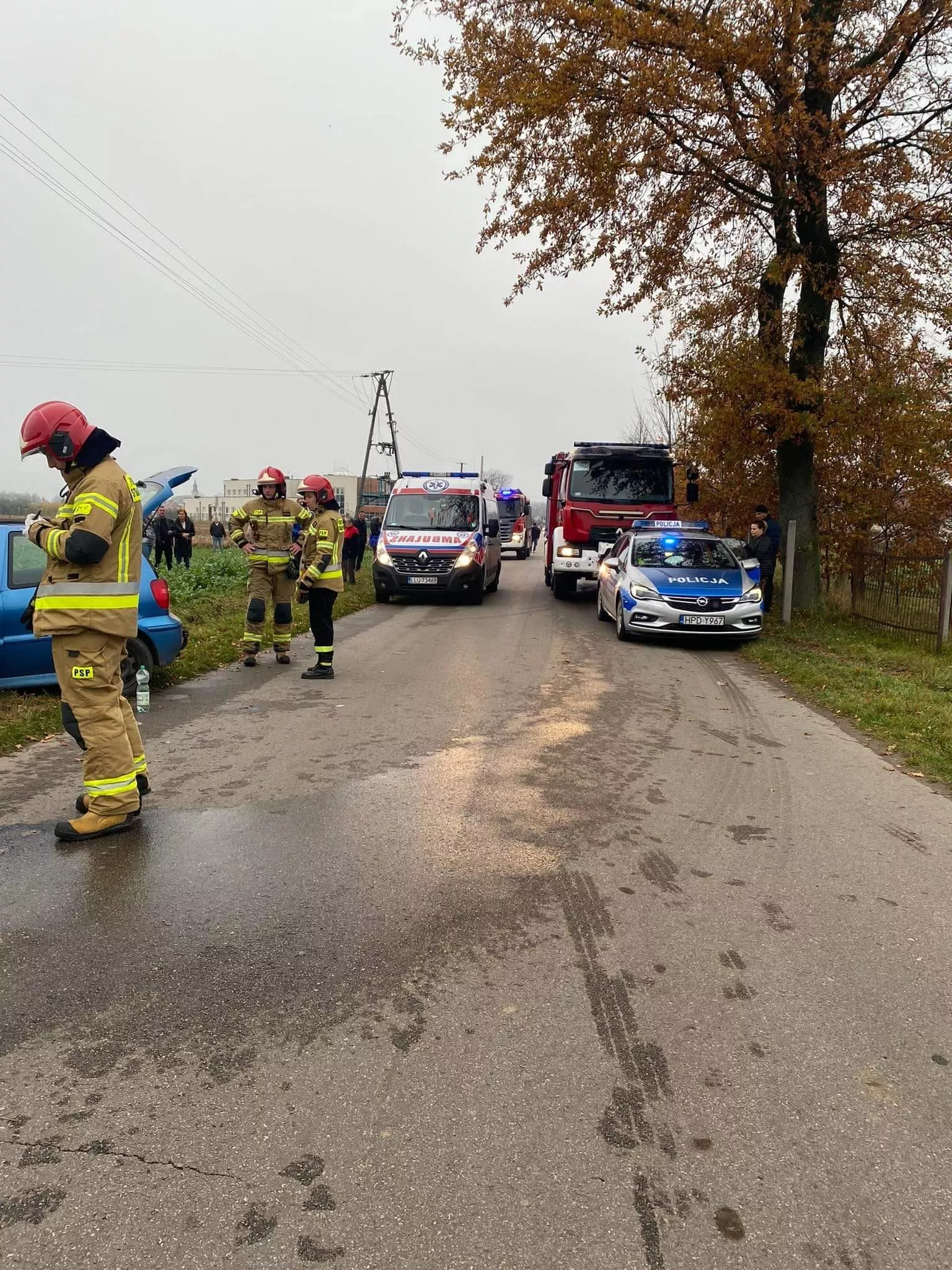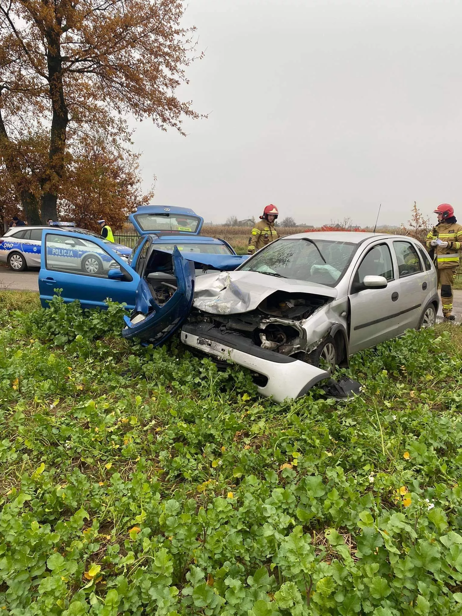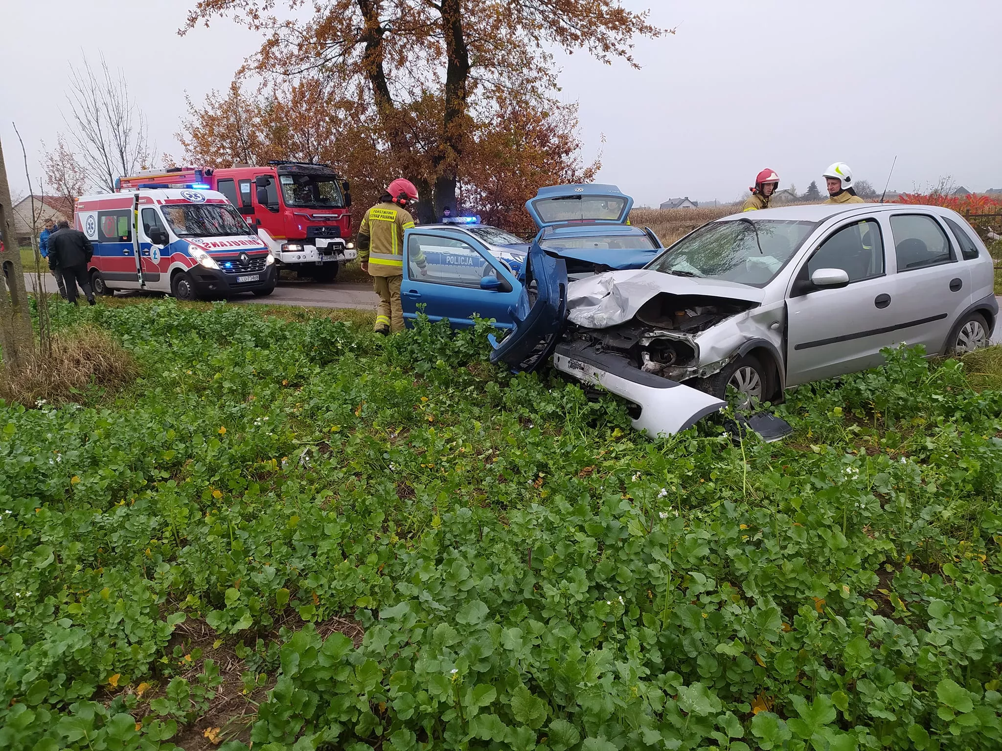 01.11.2022 o godzinie 14.44 nasz zastęp został zadysponowany do wypadku w miejscowości Tuchowicz. Po przybyciu na miejsce zdarzenia stwierdzono że doszło do zderzenia dwóch samochodów osobowych, w chwili przybycia na miejsce zdarzenia JOP wszystkie 3 osoby biorące udział w zdarzeniu znajdowały się poza pojazdami. Działania straży polegały na zabezpieczeniu miejsca zdarzenia, odłączeniu akumulatorów w pojazdach, udzieleniu kwalifikowanej pierwszej pomocy polegającej na wsparciu psychicznym, założeniu opatrunków osłaniających głowy oraz tlenoterapii biernej 100% tlen.