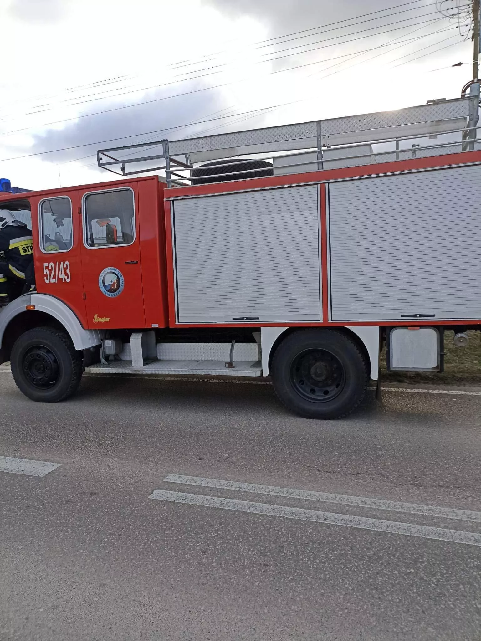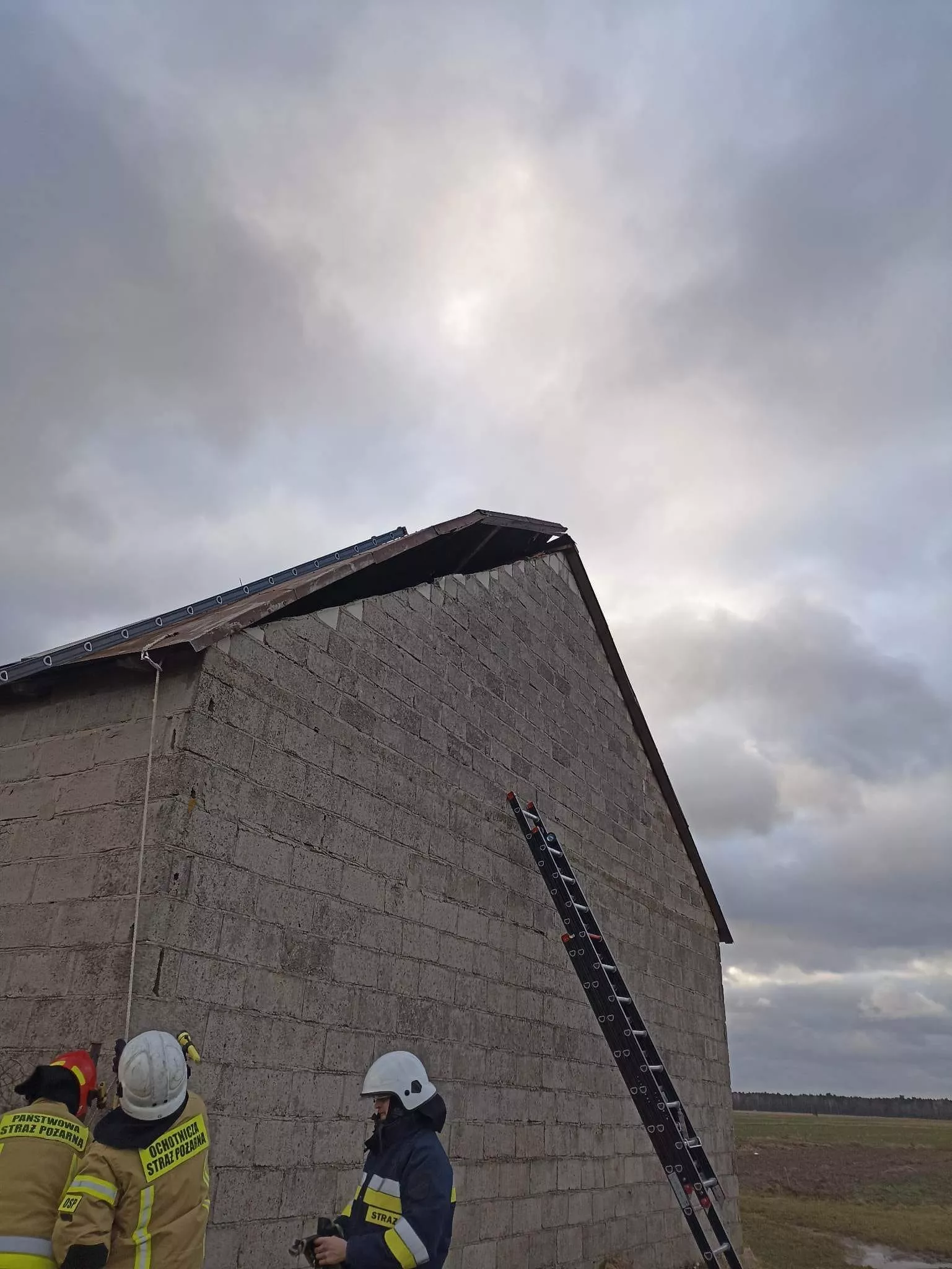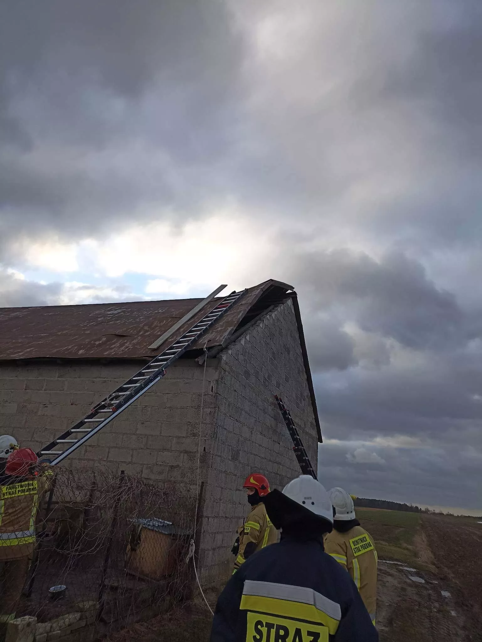 Dnia 19.02.2023 o godz. 06:49 zostaliśmy zadysponowani do zdarzenia w miejscowości Wesołówka gdzie wiatr zerwał kawałek dachu na budynku gospodarczym. Nasze działania polegały na zabezpieczeniu dachu przed dalszym zniszczeniem.