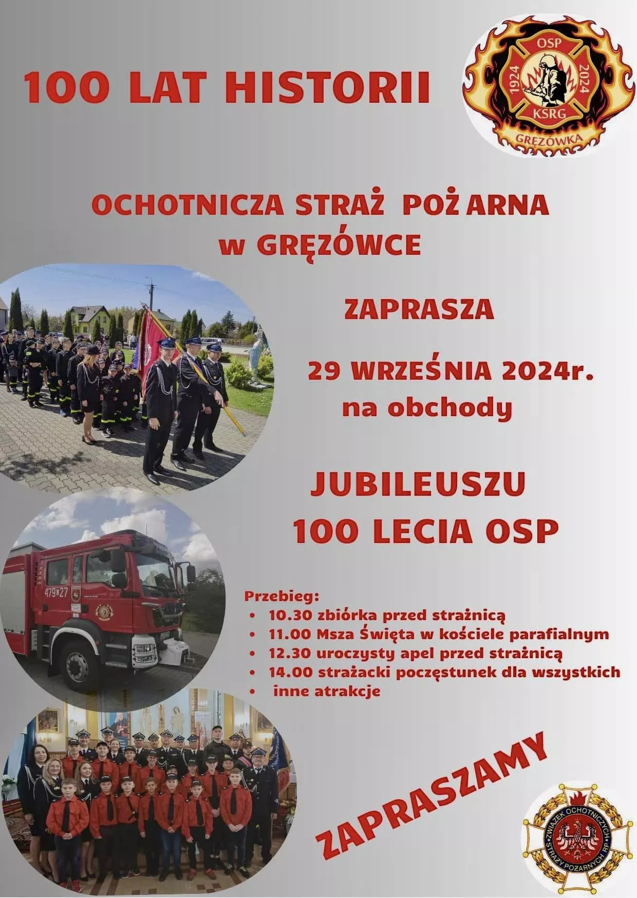 W imieniu OSP KSRG Tuchowicz serdecznie dziękujemy za zaproszenie na obchody wyjątkowego jubileuszu – 100-lecia istnienia OSP KSRG GRĘZÓWKA 🚒👌👍💪