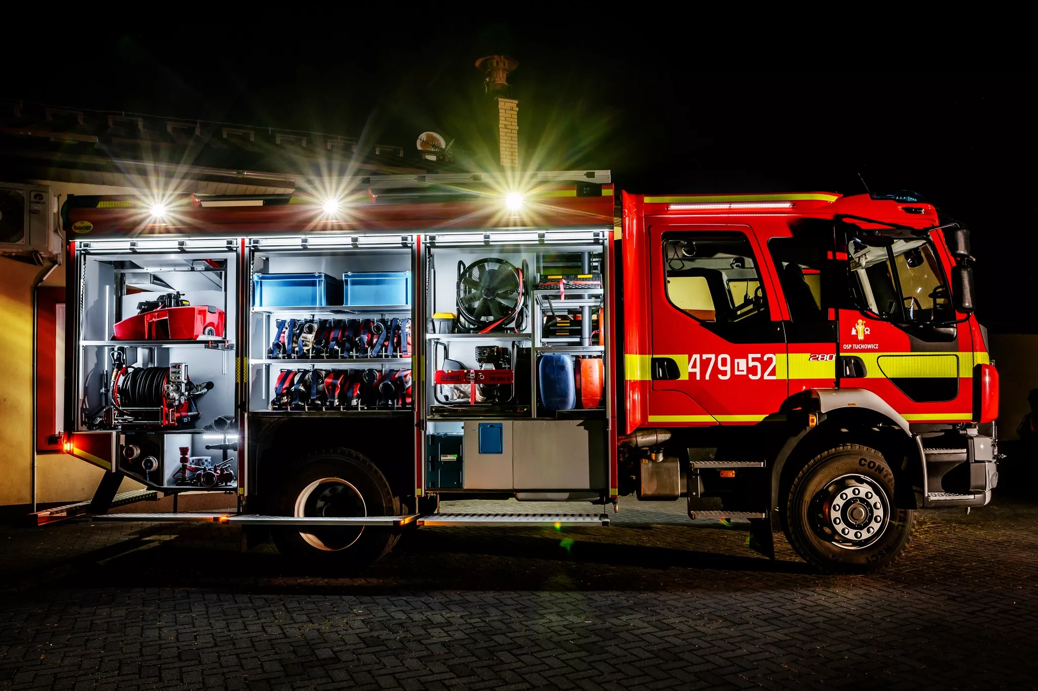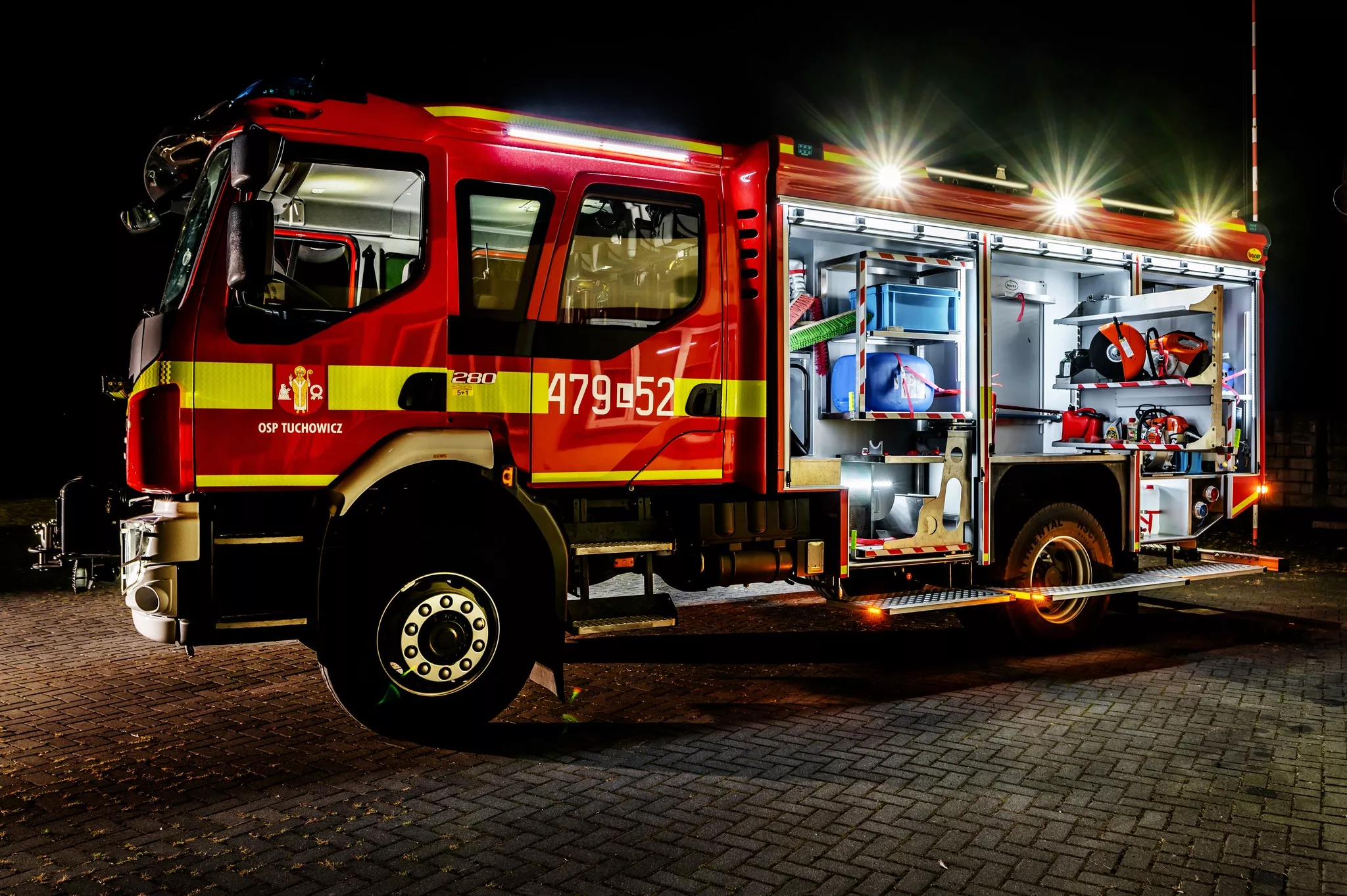 - Wnętrze wozu – nowoczesne, w pełni wyposażone do każdej akcji