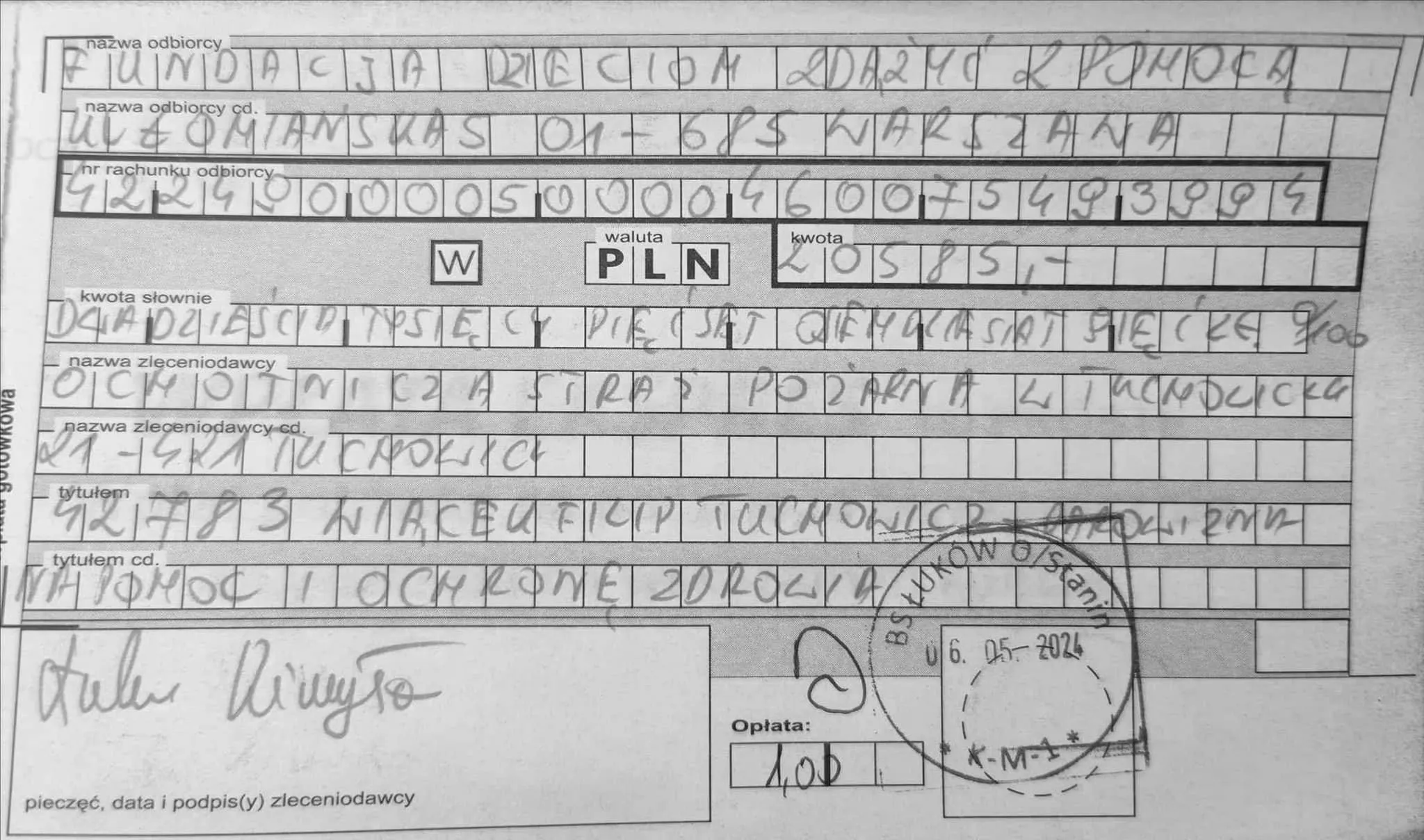Z dopiskiem 42783 WIĄCEK FILIP TUCHOWICZ